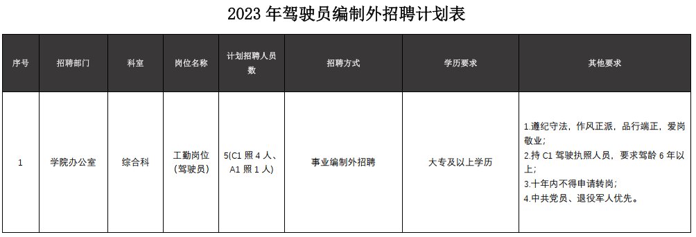 具体岗位及要求详见《2023年第二批专职教师编制外引进计划表》和《2023年驾驶员编制外招聘计划表》。
