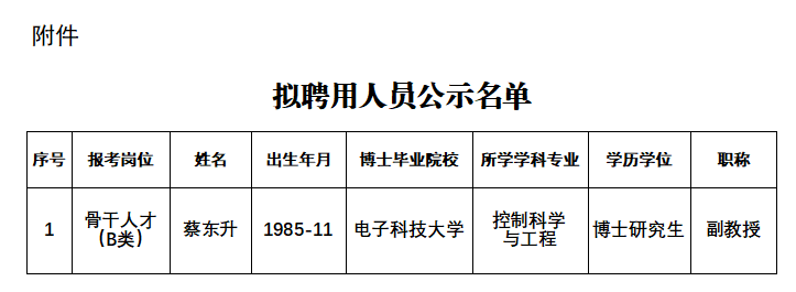 根据《成都理工大学2024年考核招聘高层次人才公告》等有关规定和工作要求,确定蔡东升博士为我校考核招聘高层次人才拟聘用人员,现予以公示(详见附件)。