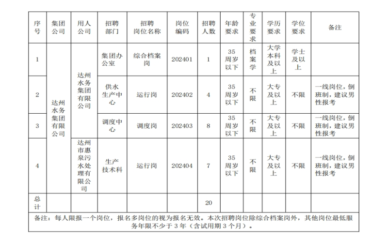 (四)本次招聘由达州水务集团有限公司负责解释。
