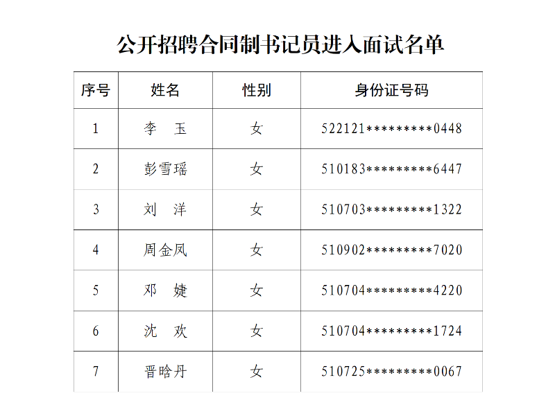 1.合同制书记员岗位:经笔试、技能测试,按岗位招聘人数与面试入围1:3的比例,从高分到低分依次确定面试入围人员,与最后一名面试入围人员笔试成绩相同的人员,一并确定为面试入围人员;