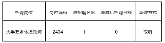 根据《四川音乐学院2024年12月公开招聘工作人员公告》的规定以及考生报名情况,因部分招聘岗位的报考人数与招聘名额之比未达到本公告规定的笔试开考比例,取消1个招聘岗位,共1个招聘名额。现将本次公开招聘工作人员取消招聘岗位公告如下: