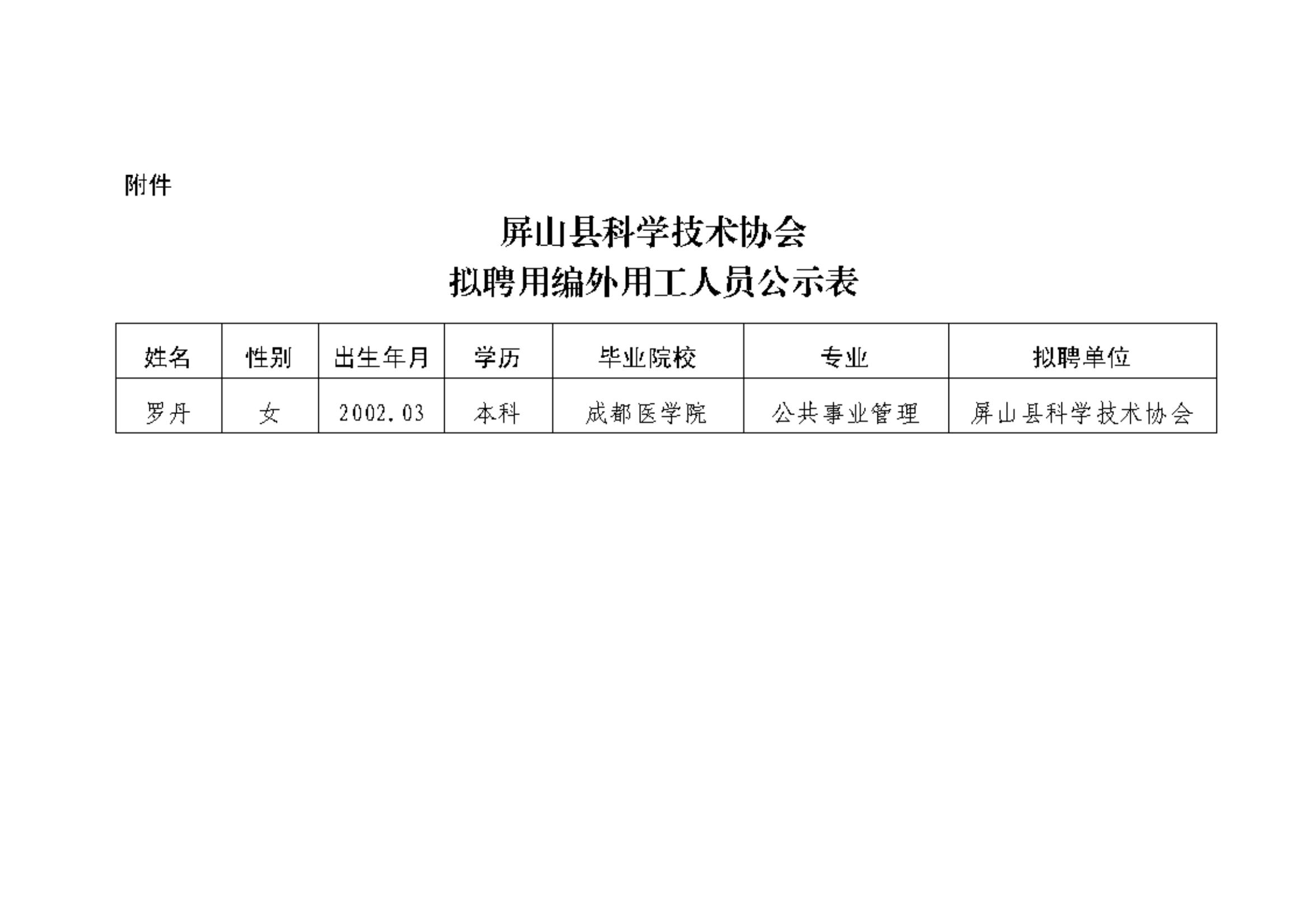 附件:屏山县科学技术协会拟聘用编外用工人员公示表