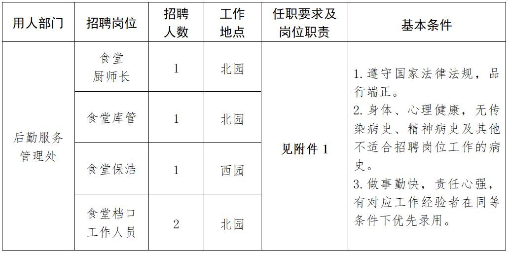 因工作需要,现面向社会公开招聘食堂工作人员数名。有关事项公告如下: