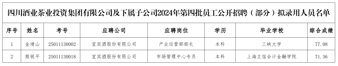 经笔试、综合面试、体检、背景调查等招聘环节考察,拟录用以下人员,现公示如下: