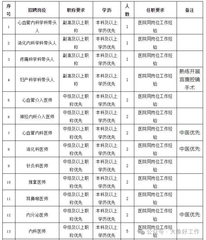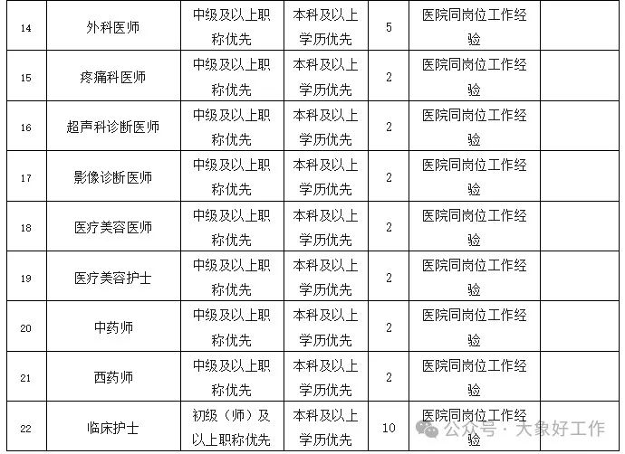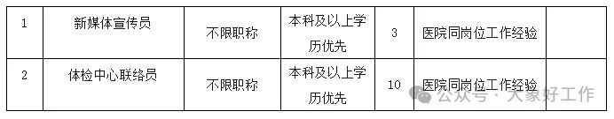 根据医院发展需要,现面向社会公开招聘以下岗位人才:
