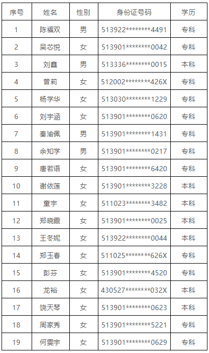 附件:《资阳市城市管理综合行政执法支队劳务派遣人员的拟聘用人员公示名单》