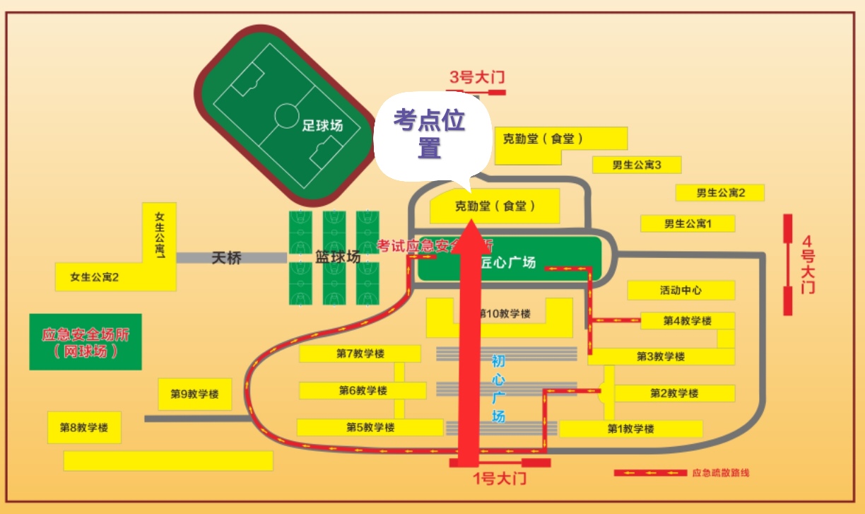 (二)考生务必提前查好交通线路,以免迟到;考试当天,考生根据附件2中考点示意图,并按照工作人员引导有序进入、离开考场,非考试区域内严禁随意走动、喧哗、聚集。