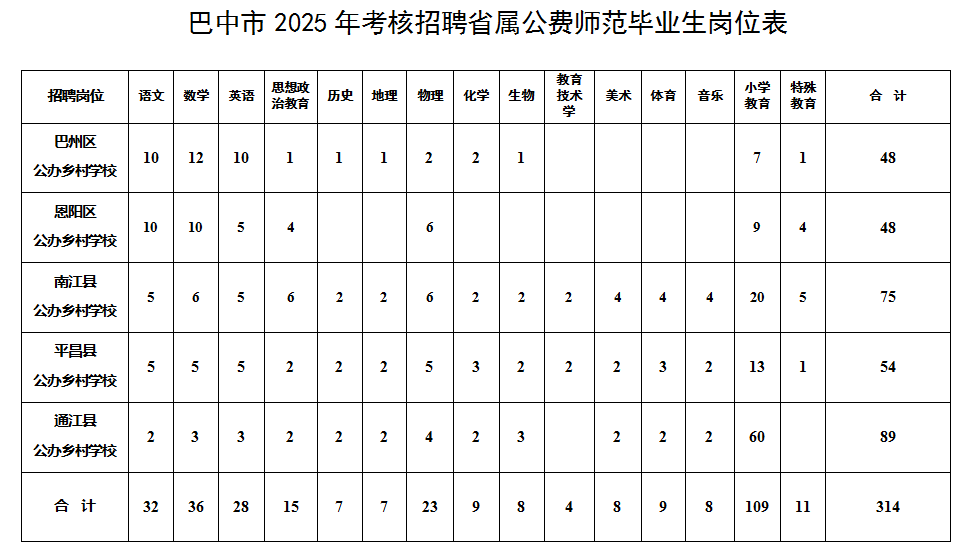 附件:附件:巴中市2025年考核招聘省属公费师范毕业生岗位表
