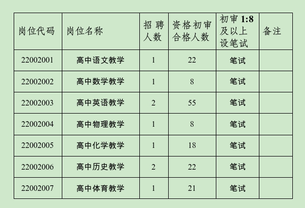 根据《2025年崇州市教育系统公开考核招聘教师公告》规定,各招聘岗位招聘人数与资格初审合格人数之比达1:8及以上的设笔试,按1:3比例进入资格复审环节。现将需笔试的岗位及其他事项公告如下: