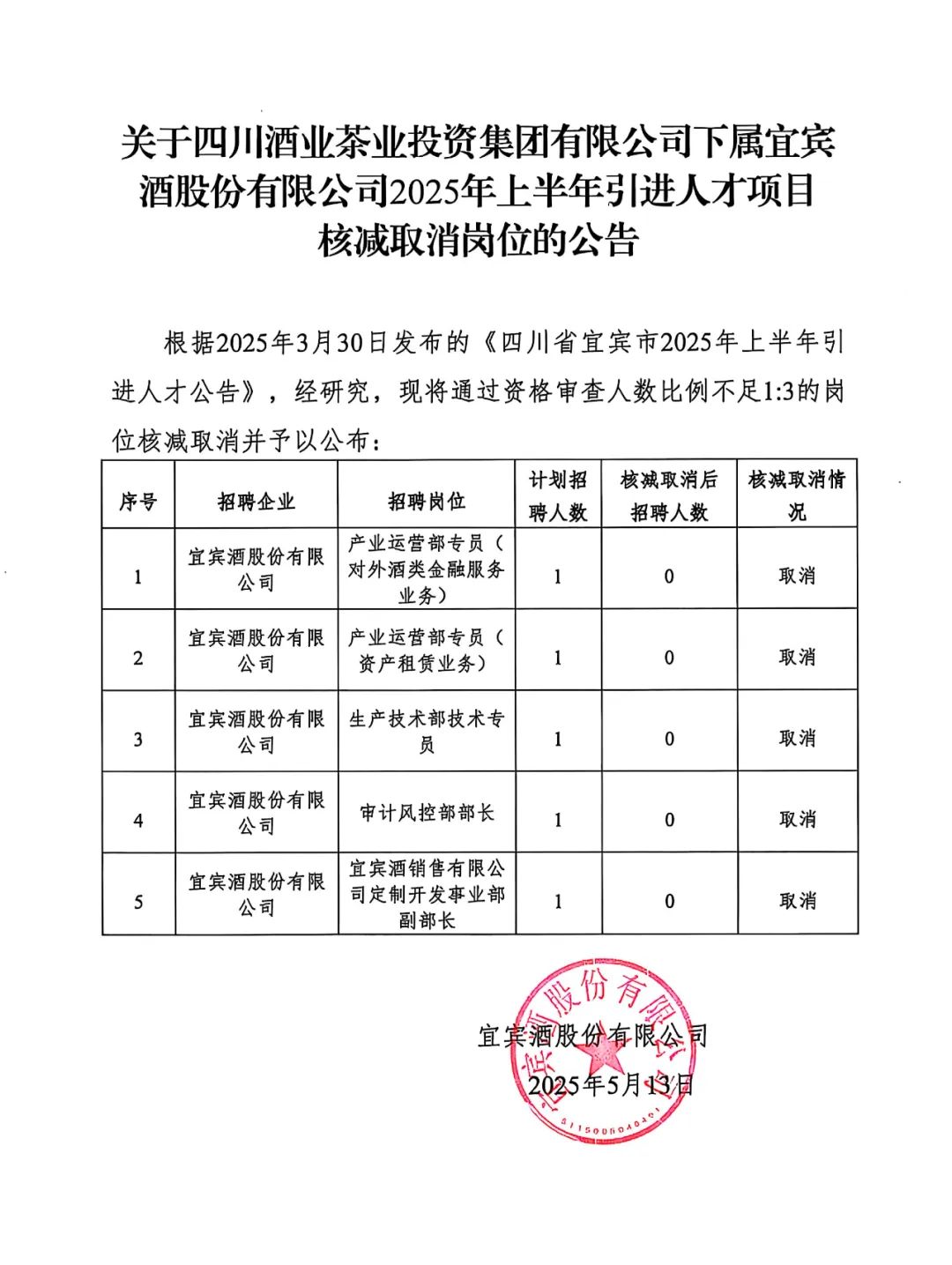 标签: 四川酒业茶业投资集团有限公司 宜宾酒股份有限公司 2025年上半年人才引进 岗位核减取消 人才招聘公告