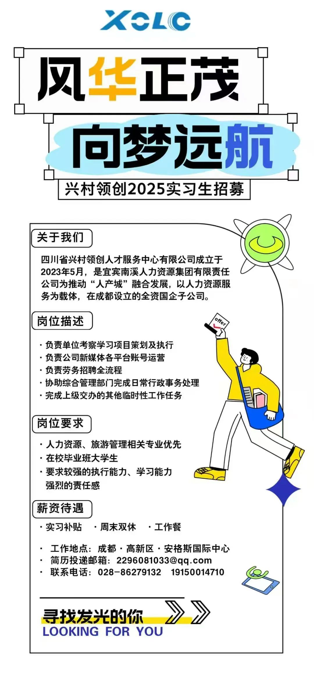 标签: 四川省兴村领创人才服务中心有限公司 2025实习生招募 实习生招聘 人才服务中心 兴村领创