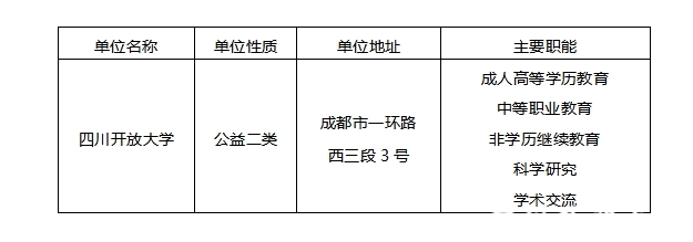 四川开放大学于2020年12月,经省人民政府批复同意,由原四川广播电视大学更名成立。四川开放大学是省政府举办,以促进终身学习为使命、以现代信息技术为支撑、以“互联网+”为特征,面向社会成员开展以开放教育为主体的学历和非学历继续教育的省属新型高等学校。主要承担服务我省全民终身学习,推进四川开放教育体系建设,探索高等教育、职业教育与继续教育融合发展的职责。