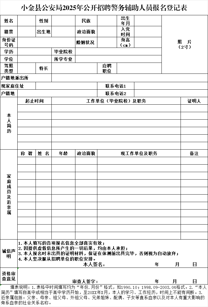 2.小金县公安局2025年公开招聘警务辅助人员报名登记表