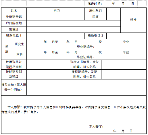 附件2 达州市职业高级中学2025年临聘教师报名登记表