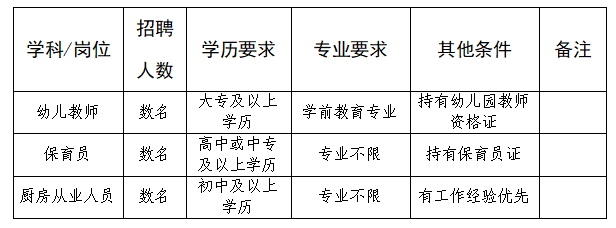 因幼儿园发展所需,本期拟对2025年秋季学期临聘教职工进行公开招聘,具体事宜公告如下: