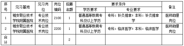 雅安职业技术学院附属医院2025年第三批次招募见习人员岗位和条件一览表