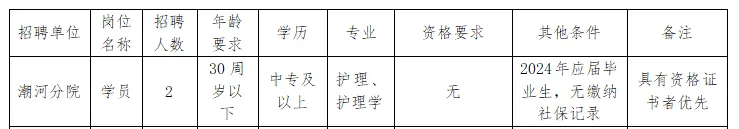 泸县人民医院医共体潮河分院(泸县潮河中心卫生院)因发展需要,现面向社会公开招聘普通高校护理、护理学专业毕业生2名。诚邀优秀的你加入我们。