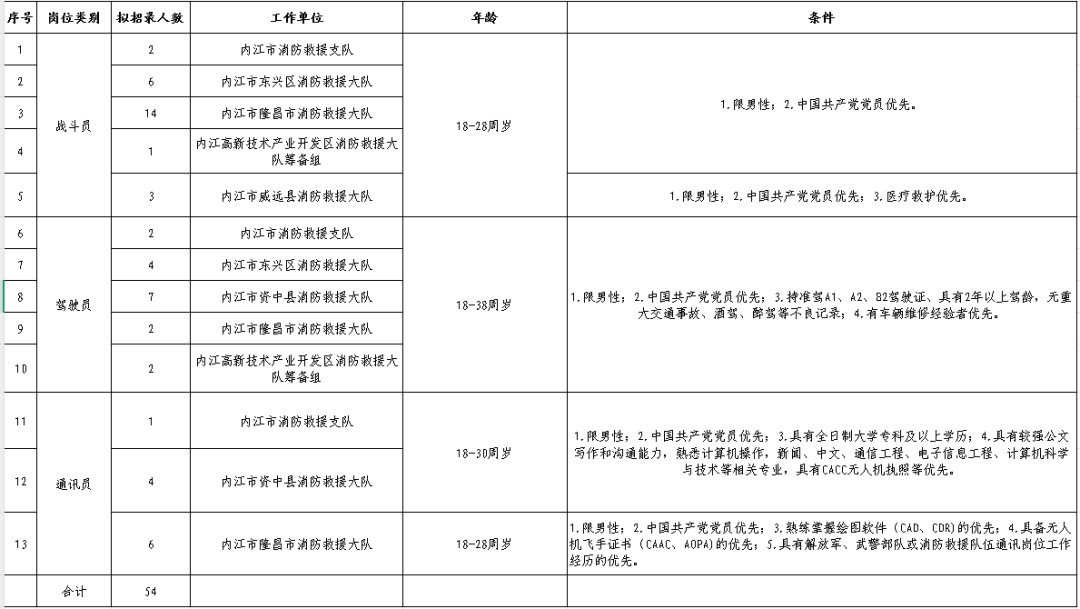 为加强全市消防救援力量建设,履行防范化解重大安全风险、应对处置各类灾害事故的职责使命,内江市消防救援支队现面向社会公开招录政府专职消防队员,有关情况公告如下。