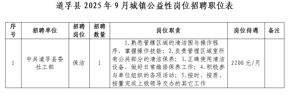 道孚县2025年9月城镇公益性岗位招聘职位情况