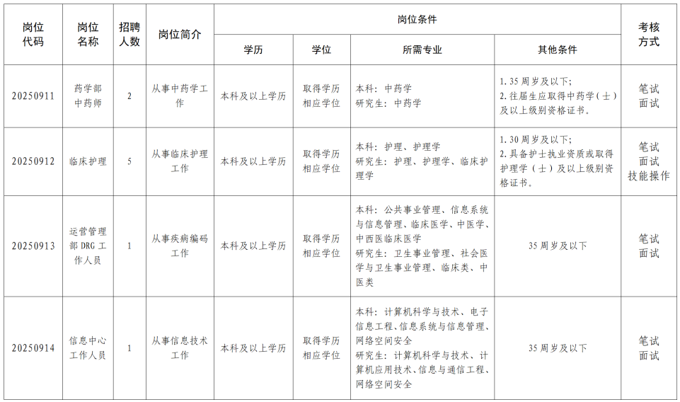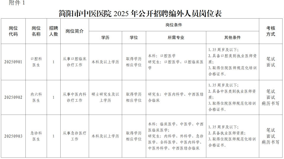 附件1.简阳市中医医院2025年公开招聘编外人员岗位表