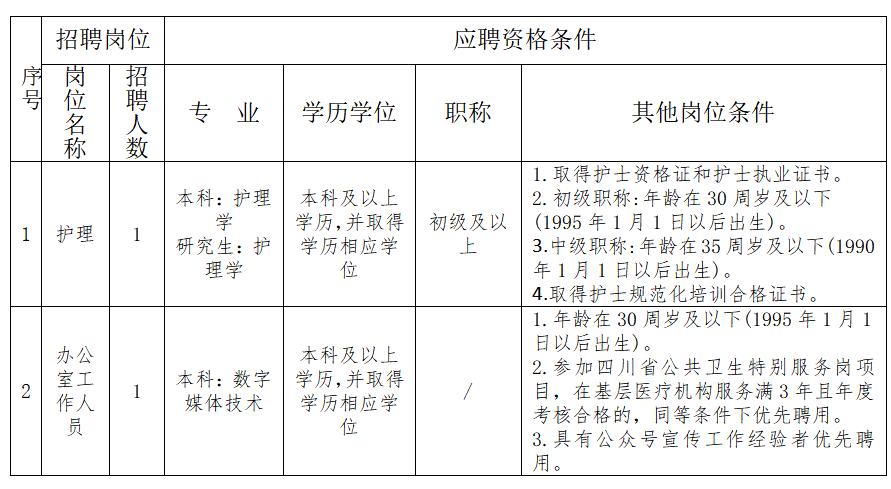 3.身心健康,具有正常履行招聘岗位职责的身体条件和心理素质。