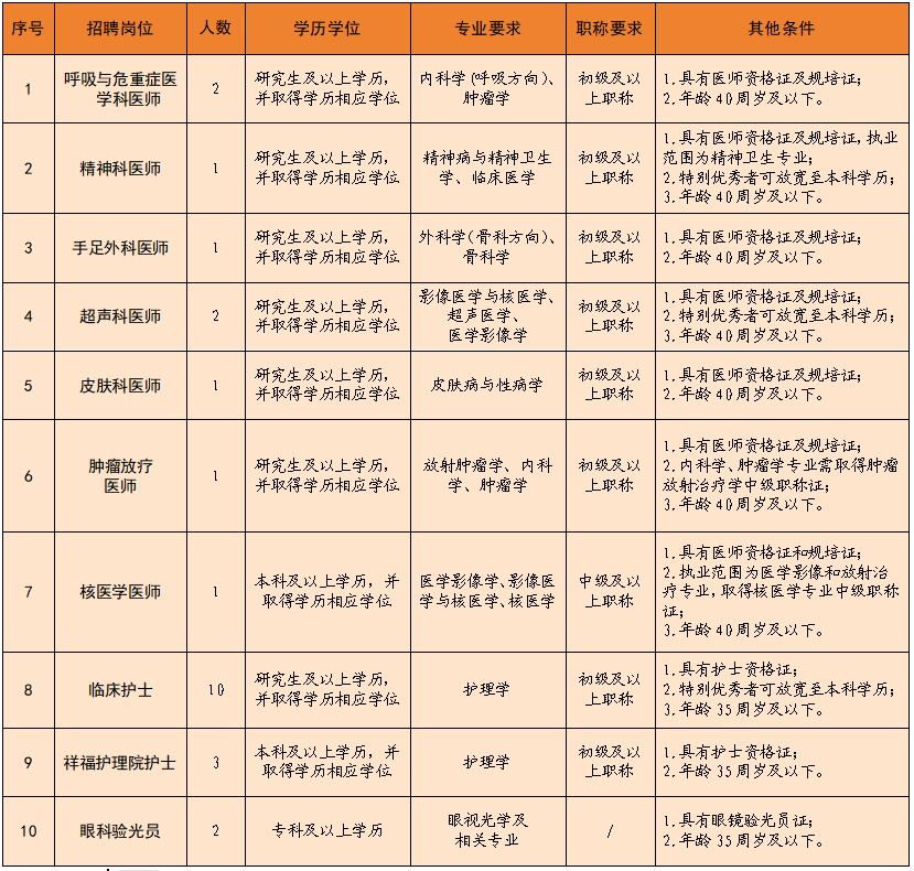 1.岗位1-9与医院签订合同。