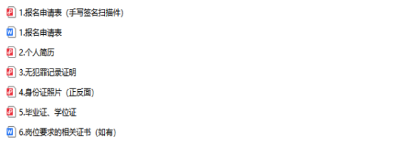 1.《报名申请表》(附件2)word版及PDF扫描件(本人签名处需本人手写签名后扫描);