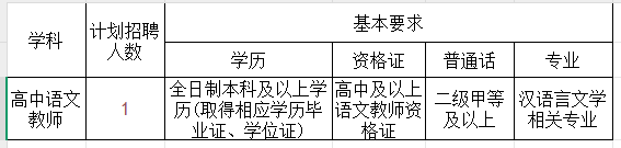 根据学校工作需要,经研究,决定面向社会公开招聘高中语文代课教师1名,现就有关事项公告如下: