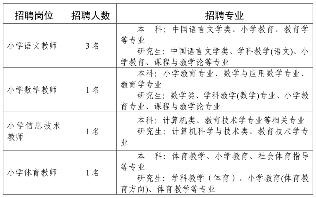 面向社会招聘符合岗位应聘资格条件的社会在职工作者、社会未就业人员及2026年应届高校毕业生,预计2026年秋季学期上岗。应聘人员须提供应聘资格条件要求的、国家承认的学历毕业证、学位证、小学及以上相应的教师资格证、普通话二级甲等及以上等级证书以及岗位应聘资格条件规定的其他证书和材料。