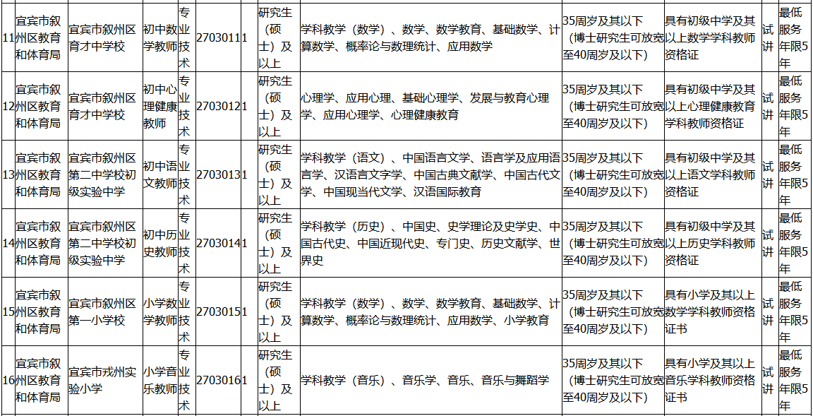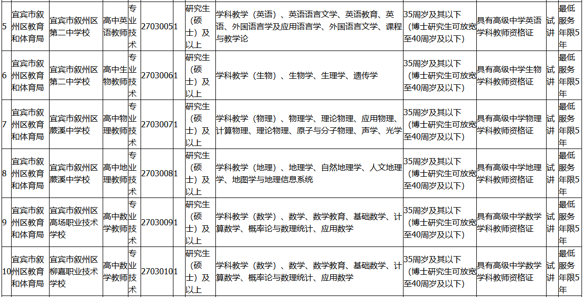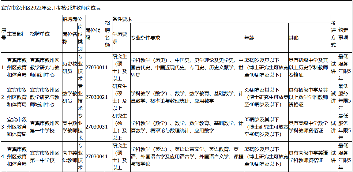 招聘单位、岗位及名额详见《宜宾市叙州区事业单位2022年公开考核引进教师岗位表》(附件1)。