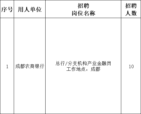 多年来,成都农商银行坚守服务“三农”和小微企业市场定位,不断增强金融服务实体能力,展现国有企业和地方法人农商行的担当,实现了规模、效益与质量均衡协调发展。根据需要,现就公开招聘产业金融岗有关事项公告如下:
