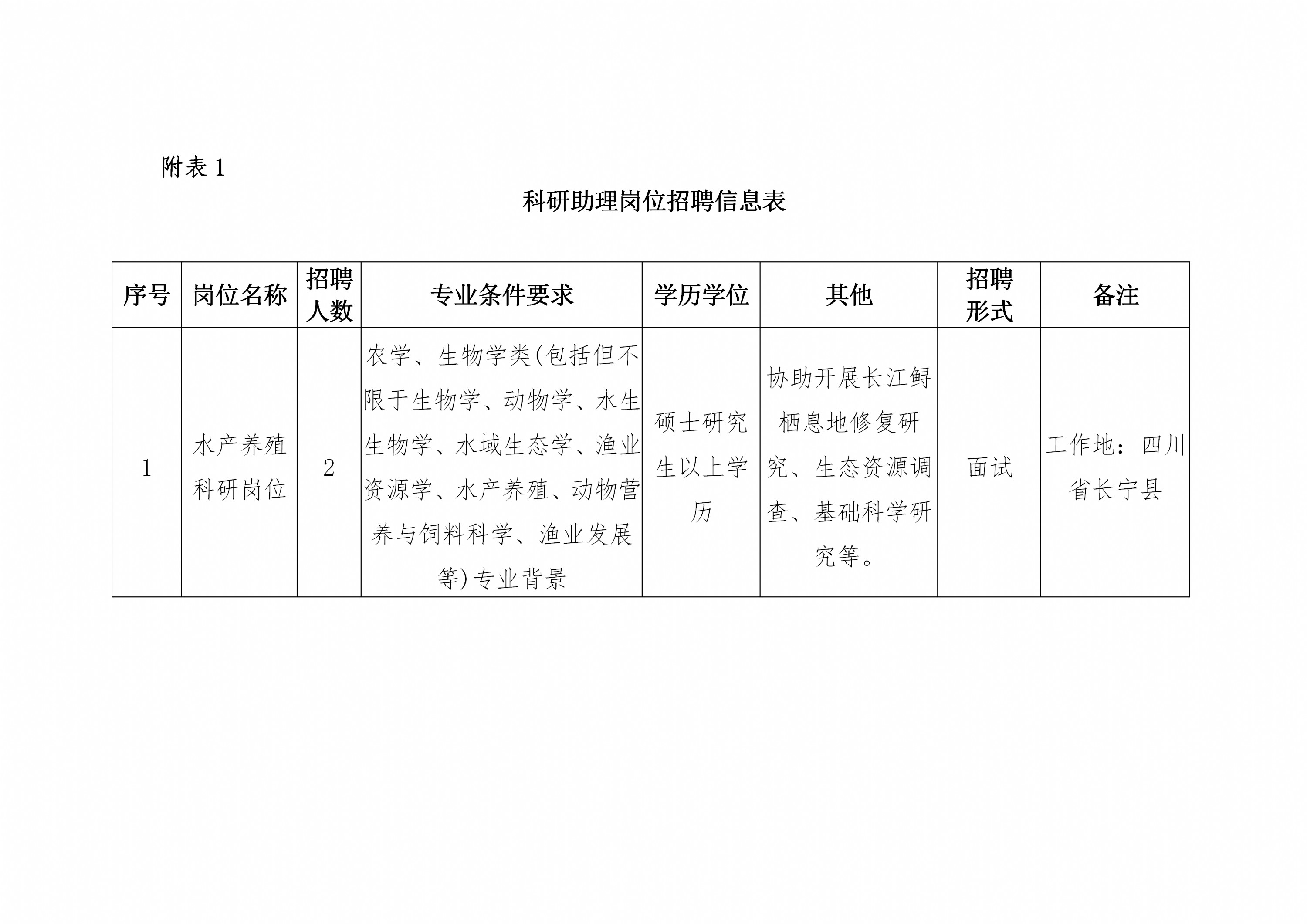 现根据科研工作需要,拟面向全国招聘科研助理2名,主要从事水产养殖、水生生物研究和实验技术等相关工作。具体要求见下表。