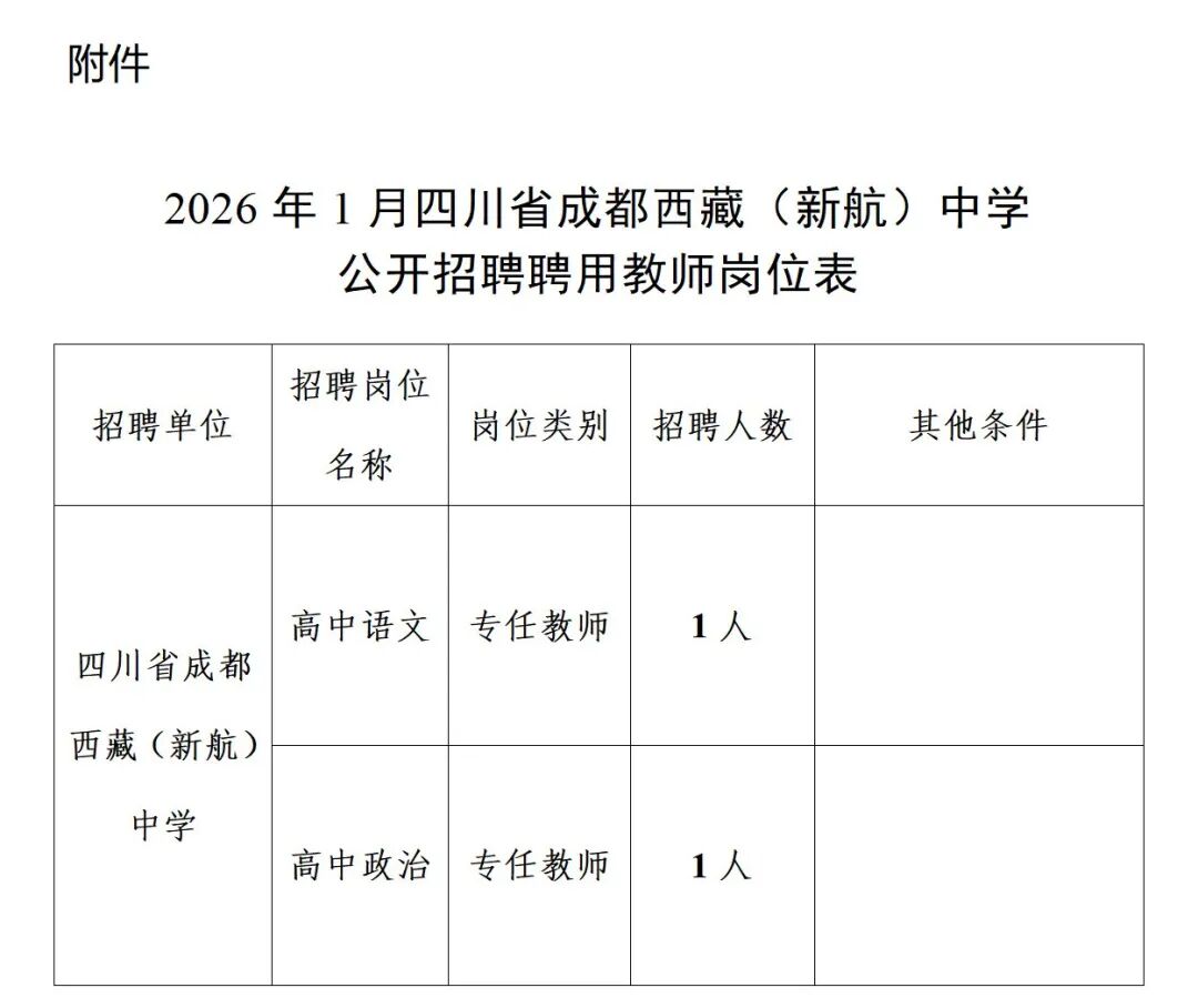 根据上级相关要求,按照公开、平等、竞争、择优的原则,2026年四川省成都西藏中学拟面向社会公开招聘聘用教师,现将有关事项公告如下。