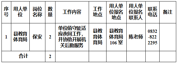 威远县教育和体育局面向社会招聘城镇就业困难人员公益性岗位。现就有关事项公告如下: