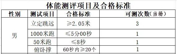 1.参测人员:所有参加面试的考生均参加体能测试,体能测试参照公安院校公安专业招生体能测评项目及标准设定达标标准,体能不达标,不能进入下一招聘环节。