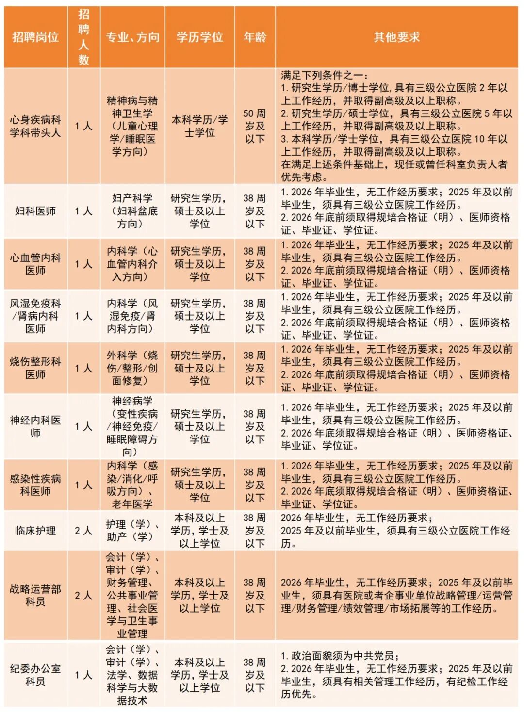 为实施“人才强院”战略,促进区域医疗中心建设,拟面向社会招聘医疗、护理、管理人员。现将有关事项公告如下。