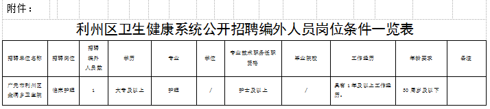 附件:利州区卫生健康系统编外人员招聘条件一览表