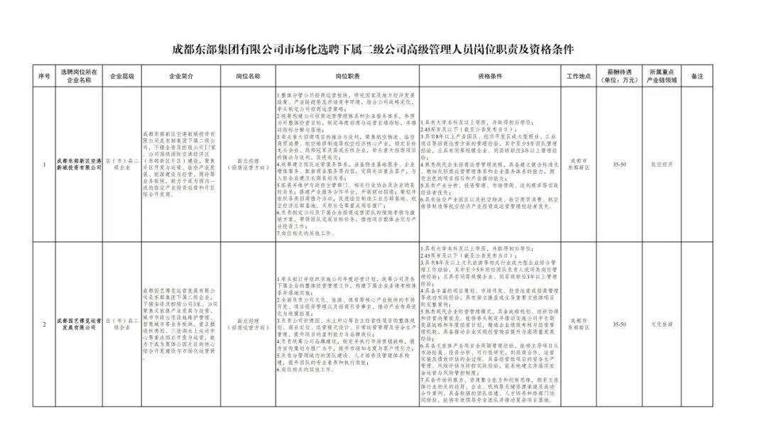 成都东部集团有限公司市场化选聘下属二级公司高级管理人员岗位职责及资格条件.pdf