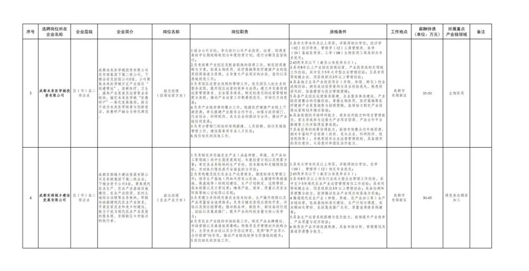 成都东部新区空港新城投资有限公司副总经理 1 名;
