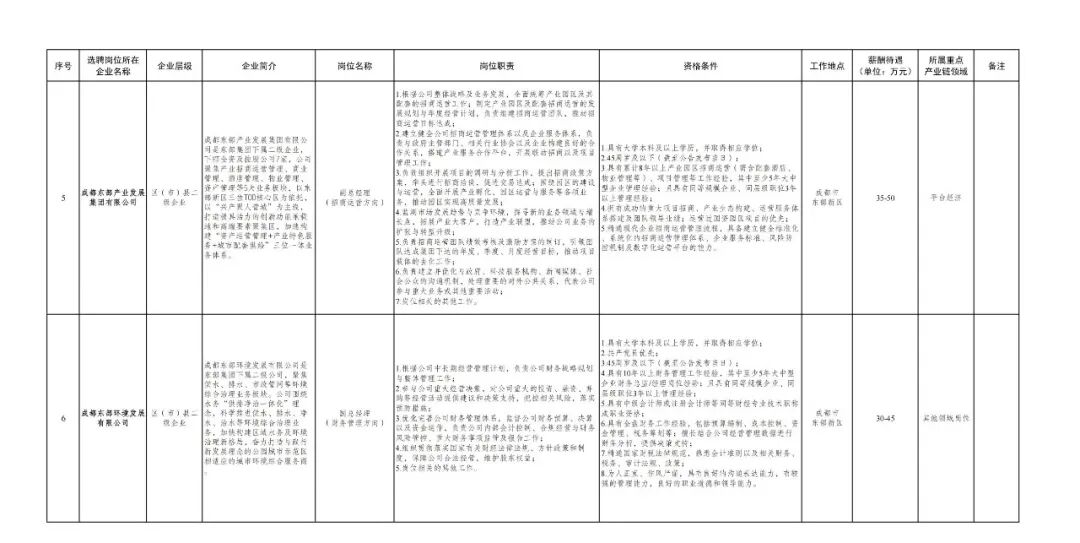 成都东部城乡建设发展有限公司副总经理 1 名;