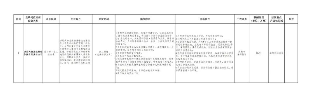 四川天府高级经理学院有限责任公司副总经理 1 名。