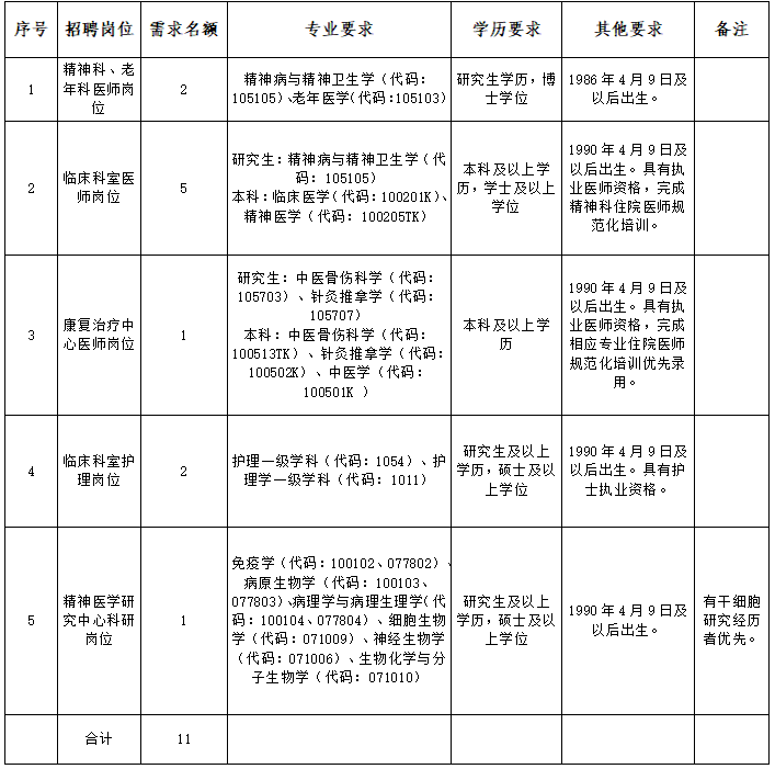因工作需要,我院拟招聘编外工作人员11名,现将有关事项通知如下。