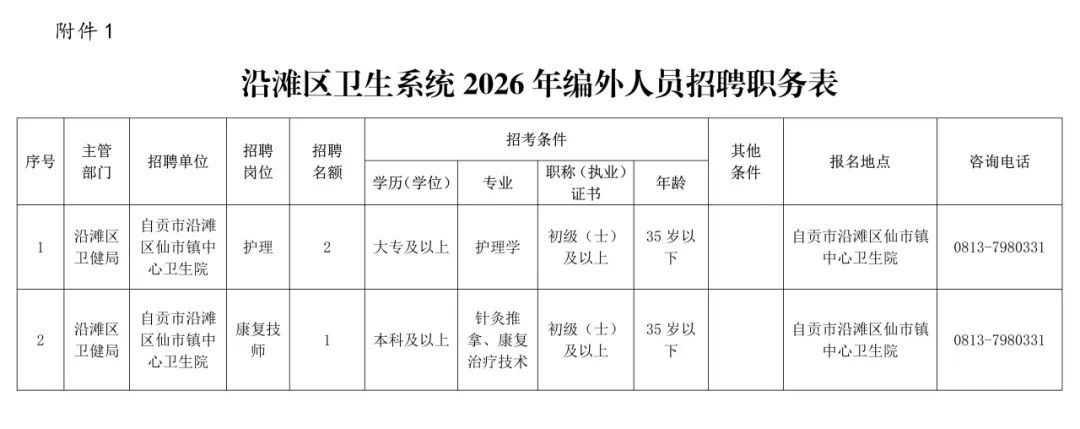 1.沿滩区卫生系统2026年编外人员招聘职务表