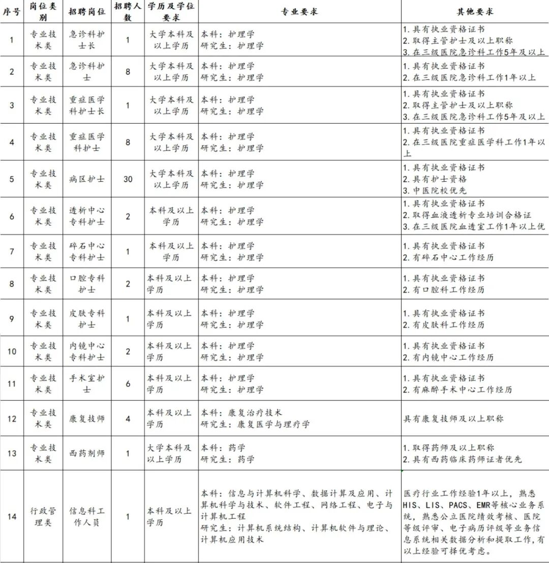 为加强我院人才队伍建设,根据康河院区科室设置及需求,按照“公开、平等、竞争、择优”的原则,现面向社会公开招聘(聘用制)工作人员。