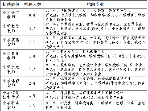 面向社会招聘符合岗位应聘资格条件的社会在职工作者、社会未就业人员及2026年应届高校毕业生,预计2026年秋季学期上岗。应聘人员须提供应聘资格条件要求的、国家承认的学历毕业证、学位证、小学及以上相应的教师资格证、普通话等级证书以及岗位应聘资格条件规定的其他证书和材料。