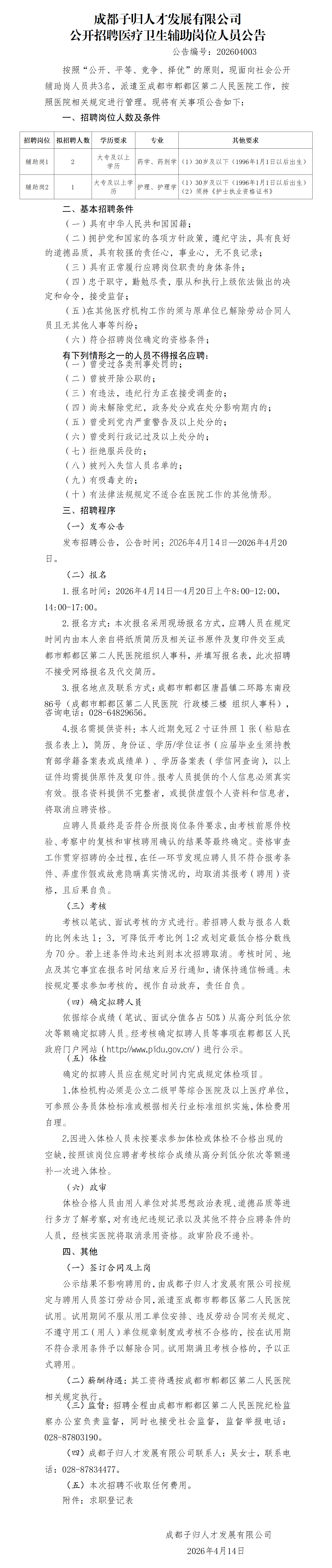 报名时间:2026年04月14日-04月21日