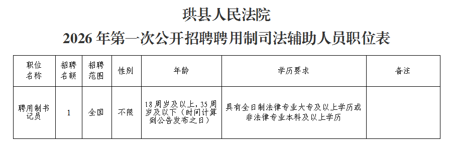 根据工作需要,珙县人民法院拟面向社会公开招聘聘用制司法辅助人员1名(系合同制编外聘用人员),现将有关事项公告如下:
