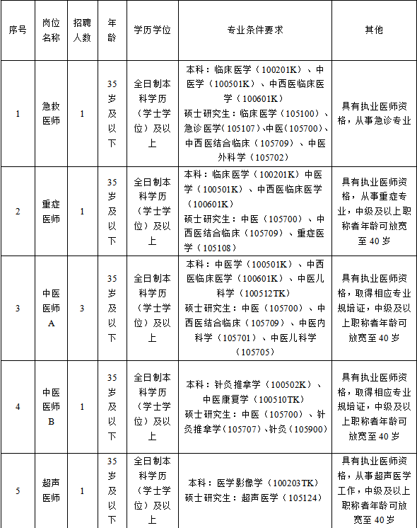 (二)西昌市中医医院2026年4月公开招聘编外专业技术人员岗位和条件一览表