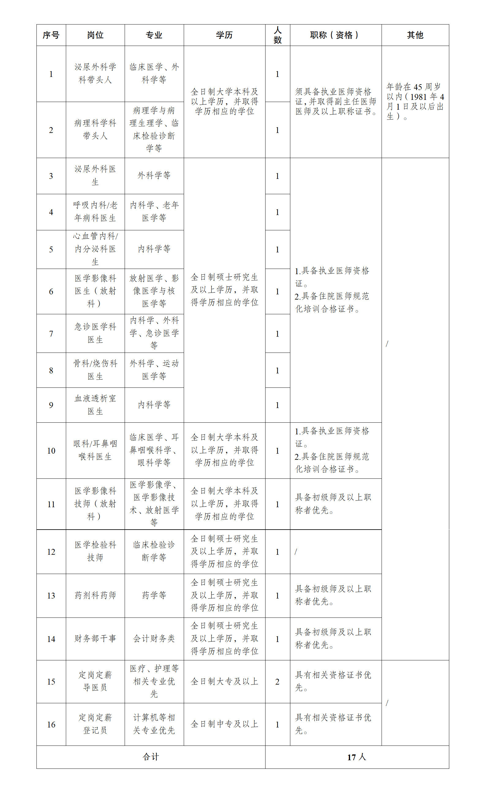 (二)招聘岗位及资格条件