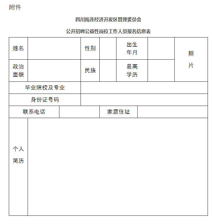 附件:四川筠连经济开发区管理委员会公开招聘公益性岗位工作人员报名信息表